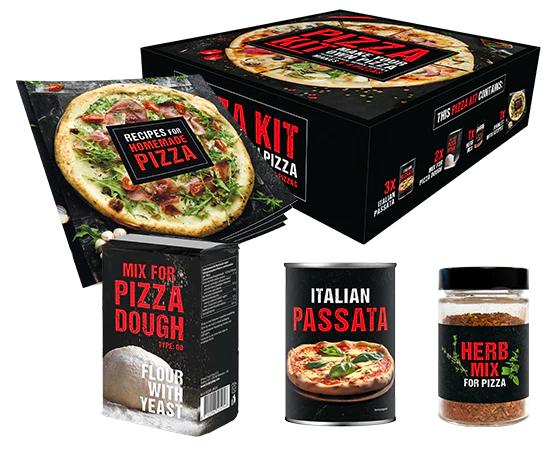 Geniet van de unieke smaak van zelfgemaakte pizza.Dat lukt gegarandeerd met de pizzamix, passata en kruidenmix uit dit pakket. Beleg je voorbereidde deeg met je favoriete toppings of laat je inspireren door een van onze recepten.