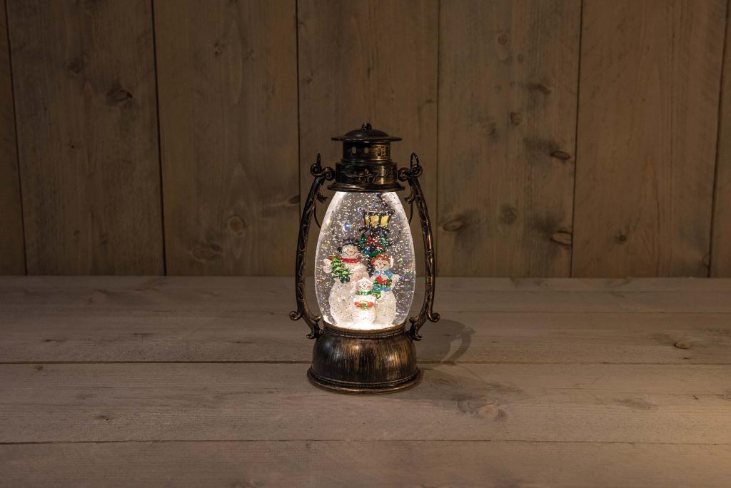 Anna's Collection LED glitterwater gaslantaarn sneeuwpop 14,5 x 24cm, warm wit