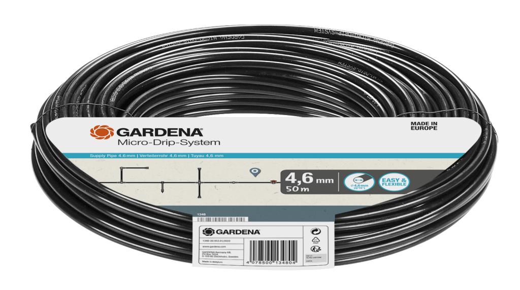 De Aanvoerbuis 4,6 mm (3/16") van GARDENA is 50 m lang en ideaal voor het installeren of verlengen van het Micro-Drip-System als je een grote tuin hebt. De makkelijk aan te leggen Aanvoerbuis verplaatst op betrouwbare wijze water naar de gemonteerde sproeiers en druppelaars, rechtstreeks naar je planten. Dankzij de apart verkrijgbare 4,6 mm koppelingen met unieke Easy & Flexible-koppelingstechnologie kan je je Aanvoerbuis vertakken en flexibel verlengen. Dankzij zijn hoogwaardige materialen heeft de Aanvoerbuis een lange levensduur. De uv-bestendigheid van de ondoorzichtige buis helpt daar ook bij. Micro-Drip-System. Zo zorg je goed voor je planten maar bespaar je toch water. Makkelijk en nauwkeurig bewateren, om water en tijd te besparen.