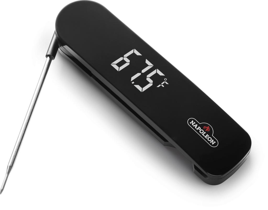 Ontspan terwijl je al je vlees op de grill bereidt. De snelle thermometer laat je weten wanneer je vlees gaar is. Steek de stalen sonde in het midden van het vlees of de vis en je kan de temperatuur in Celsius of Fahrenheit binnen 4-5 seconden aflezen op het led-display. De sensor zit veilig weggewerkt in het compacte ontwerp, kan makkelijk worden opgeborgen en wordt na 5 minuten automatisch uitgeschakeld. Reinig de steel alleen met water en zeep, niet in de vaatwasser.