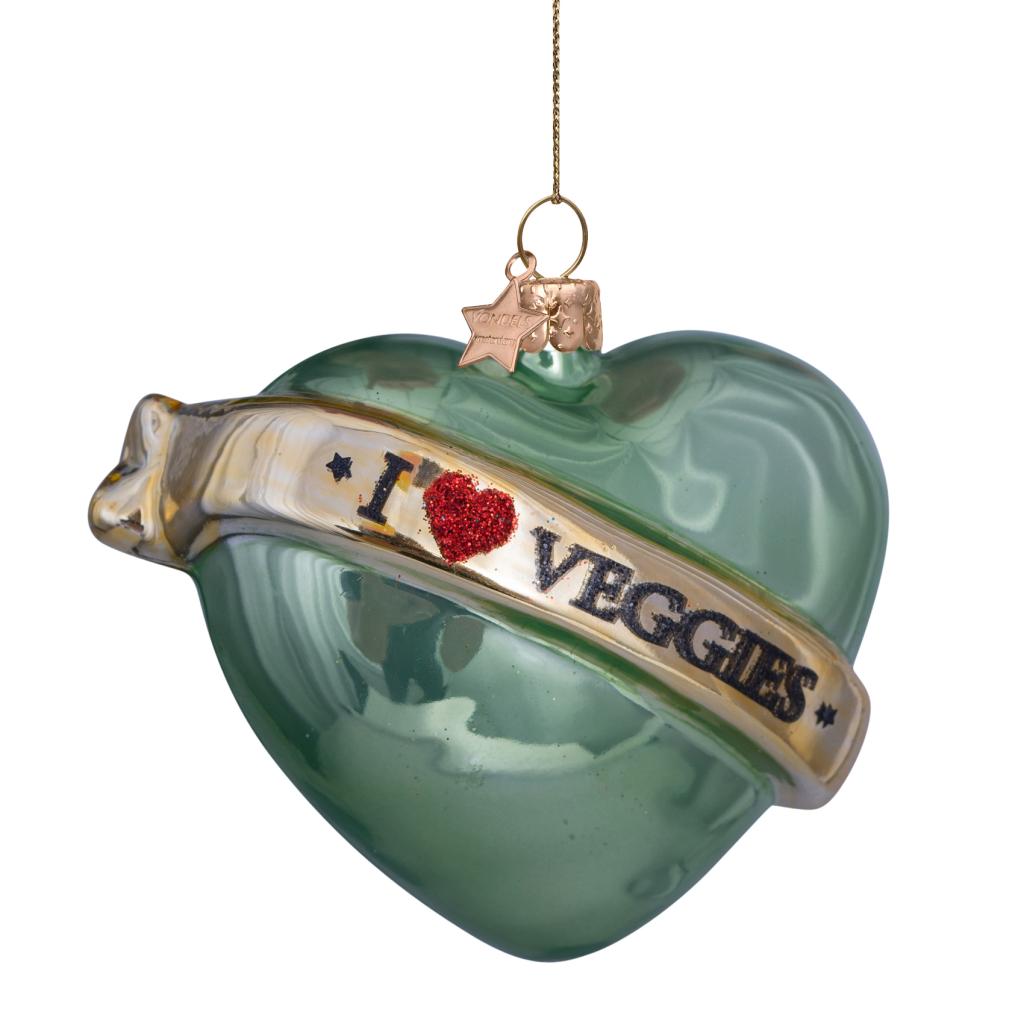 Vondels glazen kerstbal - hart 'i love veggies' 10cm groen 1 stuks
