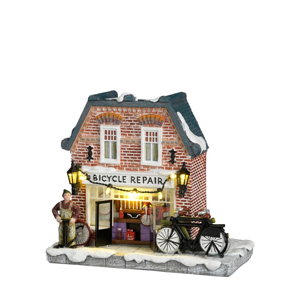 De Luville Molendam Bicycle repair shop is onderdeel van de Luville Molendam collectie. Het product behoort tot het thema dorp Luville Molendam. Een kerstdorp in deze stijl is uiteraard niet compleet zonder Luville Molendam Bicycle repair shop, dit product past perfect in uw kerstdorp.