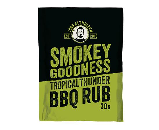 Een krachtige tropische mix van diverse exotische specerijen die met zijn perfecte fusie van robuuste smaken je gerechten naar een hoger niveau tillen. Perfect voor langzame barbecuesessies.